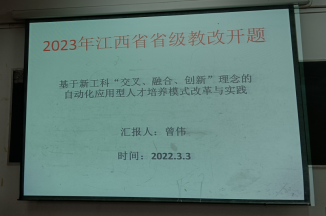 3月3日下午,beat365官网2023年江西省省级教改立项课题开题报告会在竞知楼908教室举行。学院胡日新副院长,罗东云,蔡苗苗等老师、项目负责人曾伟老师和项目负责人刘泽良老师进行了开题汇报。