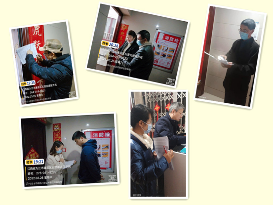 3月26日晚,beat365官网6名教工党员在副院长胡日新的带领下对匡庐苑小区2栋2单元进行了疫情排查工作。大家逐家入户登记住户信息、疫苗接种情况和核酸检测情况,并提醒住户在疫情特殊时期要加强自我防护,减少流动,降低病毒传播扩散风险。