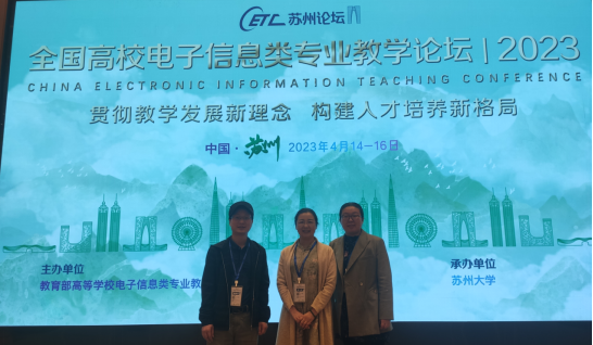 第六届全国高校电子信息类教育教学论坛于2023年4月14日至16日在苏州市华美达国际大酒店隆重举行。beat365官网电子信息工程教研室曹晖老师、教研科科长彭弘靖老师和电子基础教研室谢新文老师参加了论坛。本次会议由教育部高等学校电子信息类专业教学指导委员会主办,苏州大学和清华大学出版社承办。北京大学王志军教授、清华大学张旭东教授、浙江大学史治国教授、电子科技大学杨建宇教授南京航空航天大学周建江教授和苏州大学李孝峰副校长分别做了大会主旨报告;二十位来自国内知名大学的教授、专家分别做了专题报告。