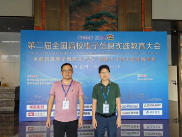 教育部高等学校电子信息类专业教学指导委员会与高等学校国家级实验教学示范中心联席会电子学科组主办,昆明理工大学承办,清华大学出版社协办的“第二届全国高校电子信息实践教育大会”于2024年7月15―17日在昆明市成功召开。本届大会主题为“全面培育教学新质生产力,构建人才自主培养新体系”,邀请电子信息学科领域专业负责人、实践教学负责人、创新创业负责人,聚焦实践教学建设,分享优秀经验与成果。来自全国200余所高校、20余家知名企业,共200余位电子信息相关专业院校领导、专业负责人、骨干教师与企业代表参加本届大会。beat365中文官方网站谢新文和刘理老师参加了此次会议并认真学习了会议精神和内容。
