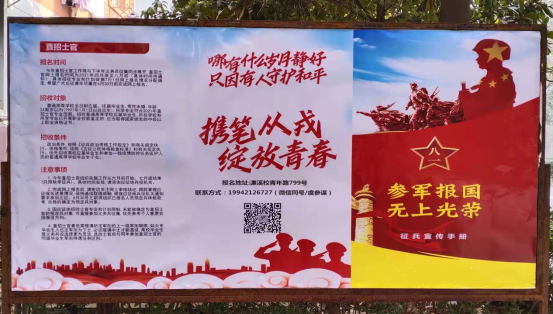 为了将征兵工作落到实处,电信学院将征兵工作贯彻到学生管理的日常工作中,抓住时间点,关注重点人,号召广大同学“一人参加,全家光荣”,鼓励大学生踊跃报名参军,保家卫国。