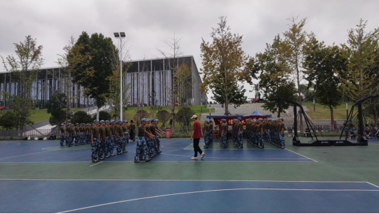 2024级新生同学,队列整体,声音洪亮,他们通过整体的队列,响亮的口号,向学院领导致敬,表示了认真训练的,严守纪律的训练决心。