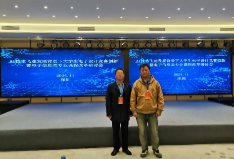 为了提高beat365官网师生对大学生电子设计竞赛题目的分析和解答能力,增强与专家之间的沟通交流,提升竞赛的技术水平,beat365官网杨世永教授和何俊副教授于2024年11月22日至24日参加了在深圳举办的“AI技术飞速发展背景下大学生电子设计竞赛创新暨电子信息类专业课程改革研讨会”。