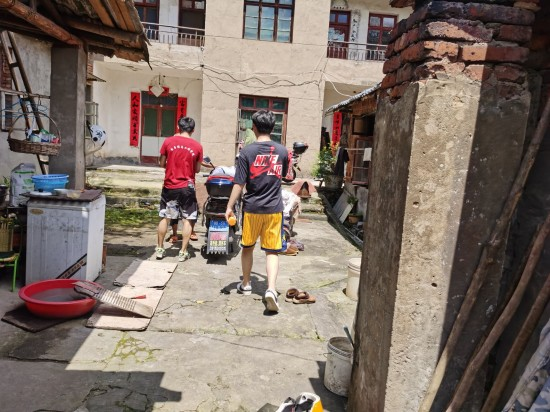 在梅山村,队员们怀着忐忑兴奋的心情来到农户家中,队员们拿起工具帮助农户打扫院子里的卫生,清理房屋周边的杂草,让队员们在实践中切身感受了农村生活,体会到农民的艰辛与不易。