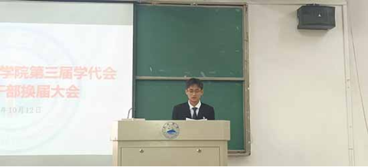 执行主席刘振同学作为第二届学生代表进行工作总结,并对下一届学生代表给予鼓励,对这一年来悉心指导的老师表示衷心的感谢与祝福。