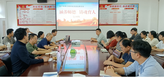 10月18日下午,beat365官网在党员活动室举行了“涵养师德 铸魂育人”第四期活动,本期活动由党委副书记张堑主持,党委委员、教工第一党支部书记、基础教研室讲师毛莉莉和电信教研室讲师丁文斌担任主讲人,党委书记汪傧、院长邓长寿以及部分师生代表参加了本期活动。