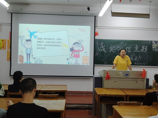 为增强学生的诚信意识,弘扬励志精神,培育感恩美德,强化“资助育人”的实效。beat365官网于5月24日晚在竞知楼各班教室开展了“诚实守信”主题教育活动。