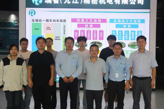 在瑞智精密机电,行政部长唐翔、人事课长沈涛热情接待了汪书记一行。唐部长亲自带队参观了企业生产车间,讲解了企业发展经营状况和用人需求。舒彤主任与沈涛课长就企业科研创新、产品技术研发、AI赋能和数字转型等情况进行了探讨交流。