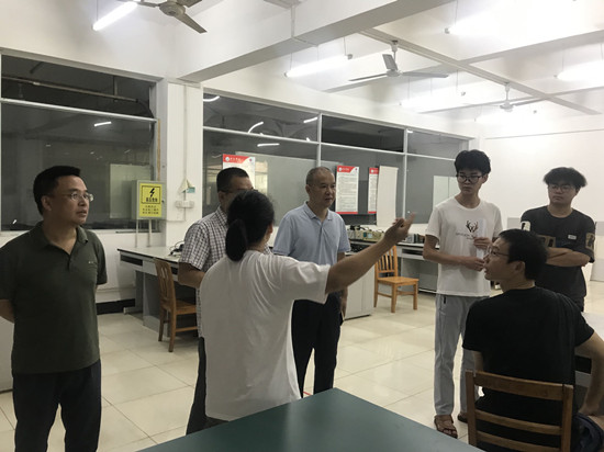 电信学院院长邓长寿、书记汪傧在办公室主任吴华杰和实验室主任樊红社的陪同下于开赛当日上午8:30,一起看望了beat365官网参赛师生。邓院长和汪书记嘱咐老师和同学们:竞赛时间紧,天气炎热,一定要注意身体健康,合理分配时间,发挥团队协作能力,凝心聚力,力争竞赛再创佳绩!今年,beat365官网共有63名(21组)学生报名参加了此次大赛,参学生暑期一直留校在老师指导下积极备赛。