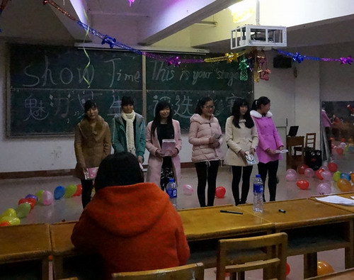 比赛中,有的女生上台表演舞蹈,其婀娜多姿的身段,在教室里翩翩飘舞,美不胜收。有的女生向观众展示了自己美妙的歌喉,每位女同学都不甘示弱,纷纷展示了自己独特的才艺,展示自己的魅力。在众多选手中,当属A1441班的李凌霞同学和A1451班的邓港平同学的表演最为出色,她们最终获得本次比赛的第一、二名。比赛最后所有女生上台领奖,本次比赛顺利落下帷幕。