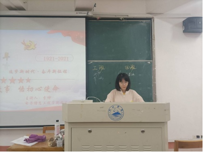 活动中,刘柯欣先以“学党史铭初心,感恩党跟党走”为主题,讲述了建党百年以来,一代代共产党人为了民族复兴和人民幸福前赴后继,以热血浇灌理想,以生命践行信仰,一寸山河一寸血,换来了今天的山河锦绣、岁月静好。其他同学也纷纷分享心中那片红色,讲述了党在革命、改革和建设等时期形成的红船精神、井冈山精神、长征精神、抗洪救灾精神、抗疫精神等,这些故事诉说着中国共产党人为中国人民谋幸福、为中华民族谋复兴的初心和使命,激励和鼓舞着青年一代前赴后继、砥砺奋进。