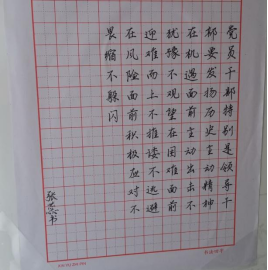 学院团委宣传部于2月24日—3月4日面向全院同学征集作品。同学们对本次活动热烈响应,踊跃投稿,共收到各年级同学优秀作品近百幅。通过认真评选,本次展出软笔书法7幅,硬笔书法21幅,每幅作品都充分抒发出了创作者对党的无限热爱和对国家繁荣昌盛的美好祝愿。