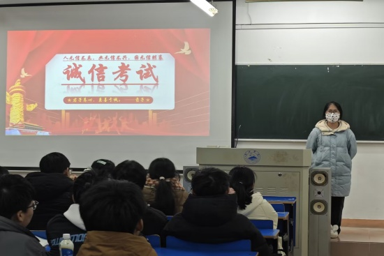 期末考试临近,为增强同学们诚信应考意识,营造公平、公正、诚信的考试氛围。beat365官网于12月21日晚在竞知楼各班教室开展诚信考试主题班会。