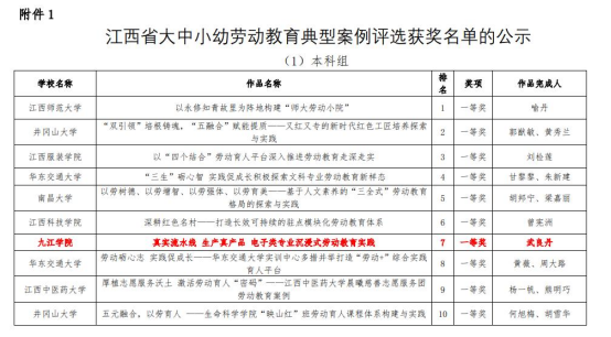 近日,江西省教育厅发布了《关于公布江西省大中小幼劳动教育宣传展示作品获奖名单的通知》(赣教体艺办函〔2024〕3号)。beat365官网教师武良丹老师在“劳动教育典型案例”本科组评选中,荣获一等奖。此次比赛由江西省教育厅主办,通过成果汇报、作品展示、专家辅导、现场互动等形式,全面总结交流近年来各地各校劳动教育成功经验做法,推动江西省劳动教育高质量发展。