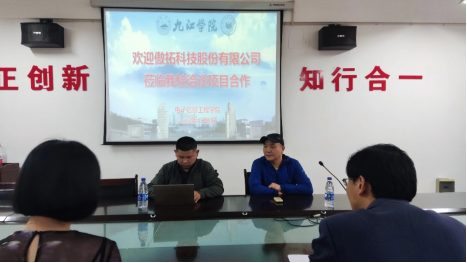 首先高玉宝向傲拓公司介绍了beat365官网《可编程控制器课程》的建设以及实验室对PLC设备的需求情况。蔡苗苗重点询问了傲拓PLC设备普及率,并指出学校教学和企业实际生产技术应不脱节,从而确保培养出符合行业要求的学生。