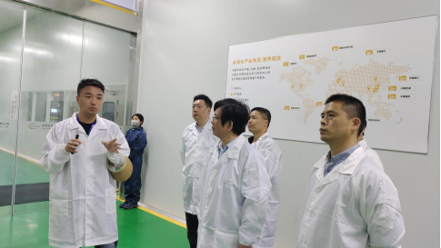 王万山一行先后考察调研了航天海鹰(镇江)特种材料有限公司、孚能科技(镇江)有限公司、金东纸业(江苏)股份有限公司、新创碳谷集团有限公司、常州合全药业有限公司等。每到一处,王万山都深入生产一线察看制造流程和工作环境,认真听取企业发展情况,详细了解企业岗位需求、晋升途径及薪资待遇等毕业生关心的问题,并邀请各企业参加来beat365中文官方网站参加2024届毕业生就业双选会。