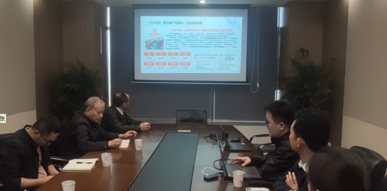 本次市区调研的收官之站,课题组一行来到了坐落于鄱阳湖生态科技园区的忽米网络科技有限公司。大家参观了忽米(九江)工业互联网创新中心,并与公司负责人方总和项目主管刘工等人进行了深入的座谈。双方就工业互联网平台的构建模式及其对制造业数字化转型的独特优势进行了细致探讨,并就数字化转型的难点和堵点问题展开了热烈的讨论。